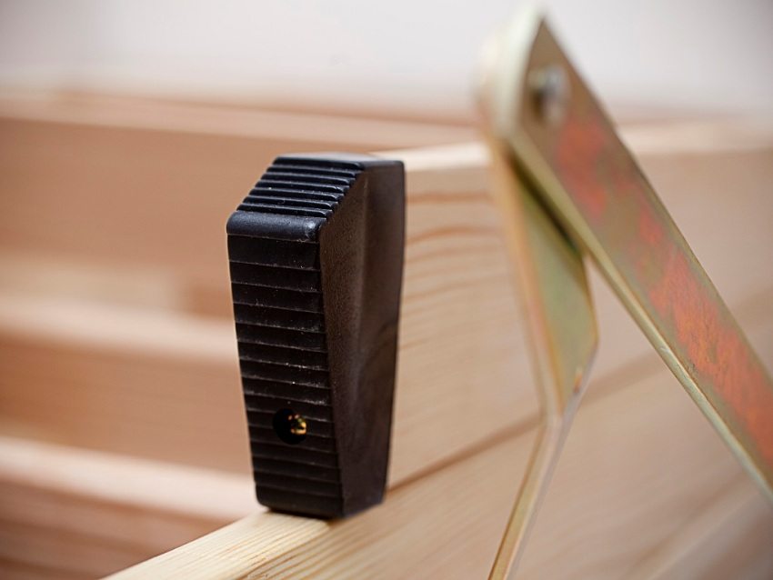 An important fact that testifies in favor of folding ladders is their safety. Such stairs usually have special notches on the steps to prevent slipping, and even a railing. In order to prevent the ladder from opening up arbitrarily, and without injuring someone, it is equipped with a special fixing mechanism and an additional locking latch. For added safety, ladders are often equipped with anti-slip feet.