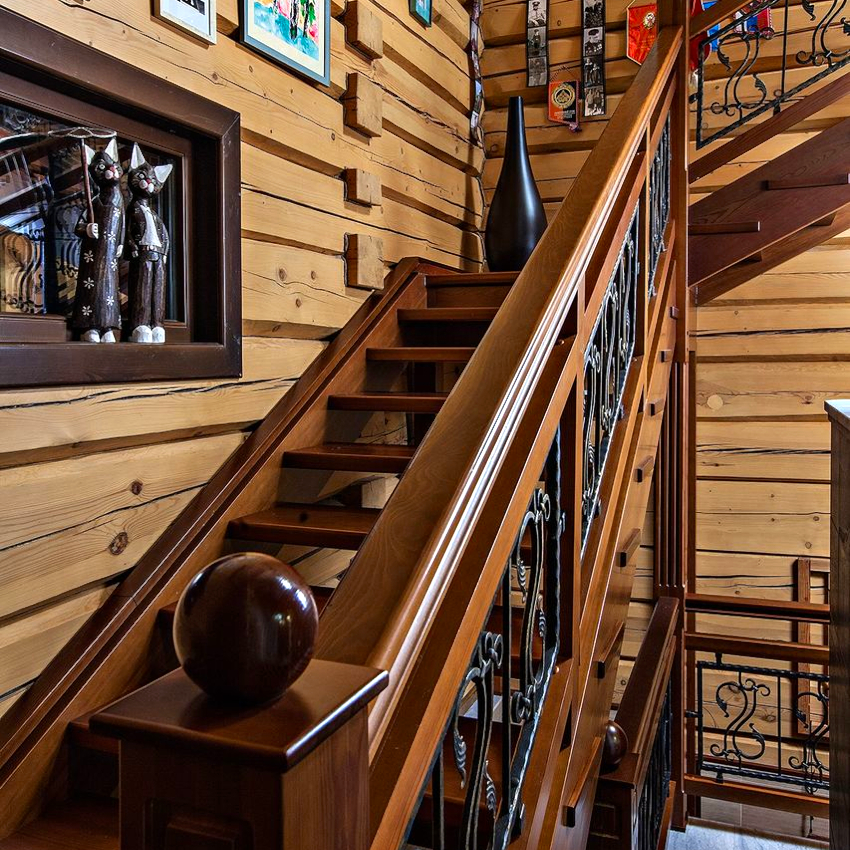Handrails are made of wooden beams, the section of which should be the same as the section of balusters