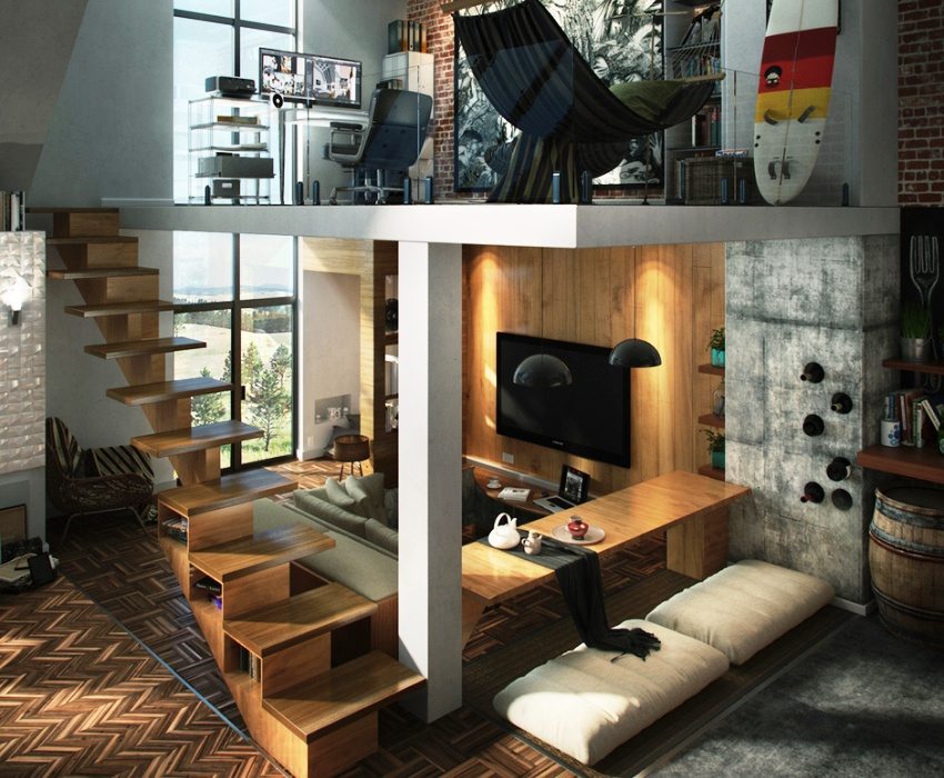 If we consider ideal conditions, then the attic staircase is designed during the preparation of the project. However, in reality everything happens differently. Often herself attic is completed much later than the commissioning of a residential facility, and often appears on the site of an ordinary attic space. In such conditions, you have to puzzle over the problem of installing stairs to the attic. A photo of some options allows us to make a small overview of them.