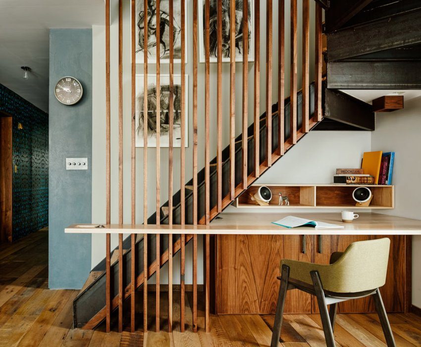 Some designers create a comfortable seating area under the stairs. Children especially like him. You can even put a table there, creating a small office for work. Nobody forbids making shelves for books there by creating a library. The main thing is that this whole structure does not make the entire appearance of the staircase heavier, does not make it too bulky and does not too limit the possibilities for cleaning the room.