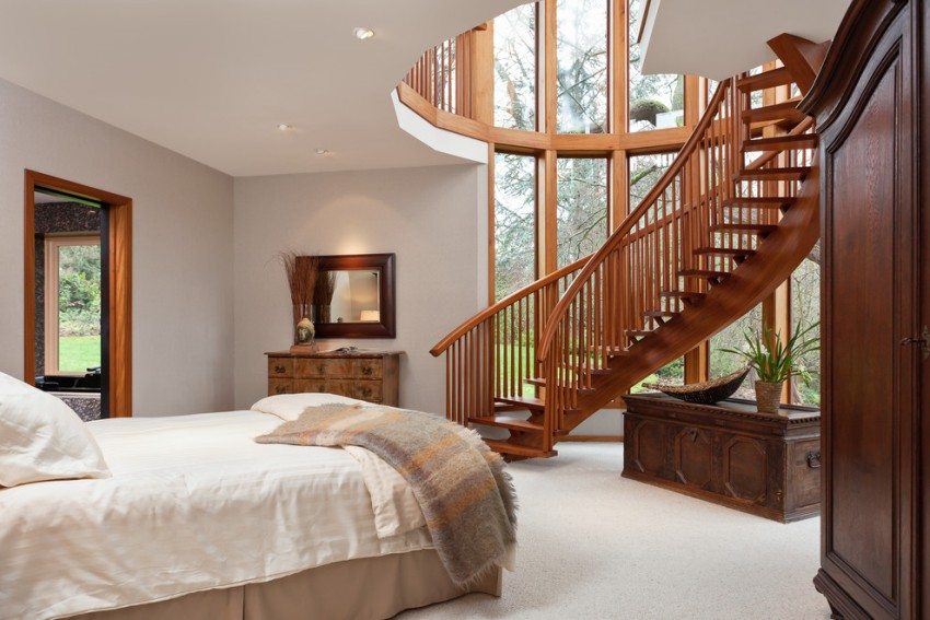 Spiral staircase in the bedroom