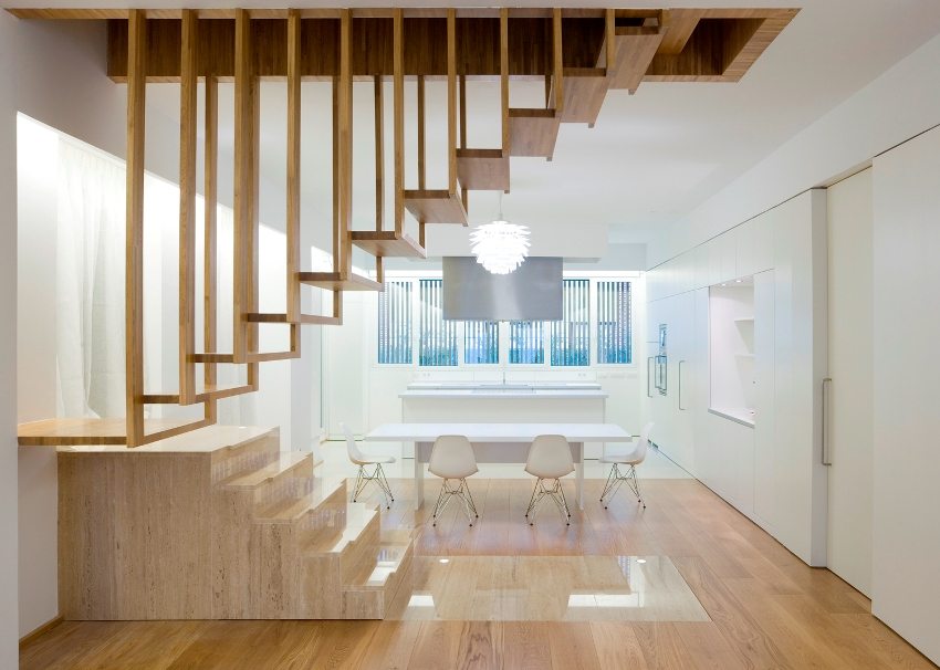 Today, the style of the interior of the room mainly dictates the choice of design options and colors of the stairs. The original Scandinavian design spread from the Nordic countries. It is characterized by the maximum use of the natural beauty and benefits of wood. It has a light shade, and often turns completely white. This is due to the climatic characteristics of the circumpolar regions of Scandinavia, where there is not enough sunlight, especially in the winter season. Often this style involves the installation of combined types of stairs, in which you can observe a harmonious combination of wood and metal.