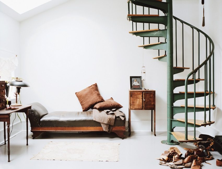 Types of metal stairs to the second floor. Photos of models of various designs