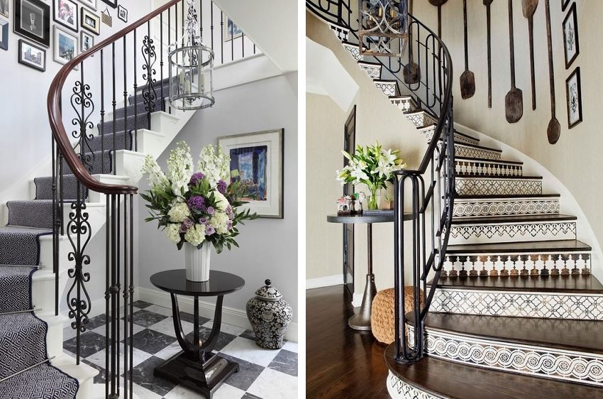 Wrought iron railings give the stairs beauty and originality