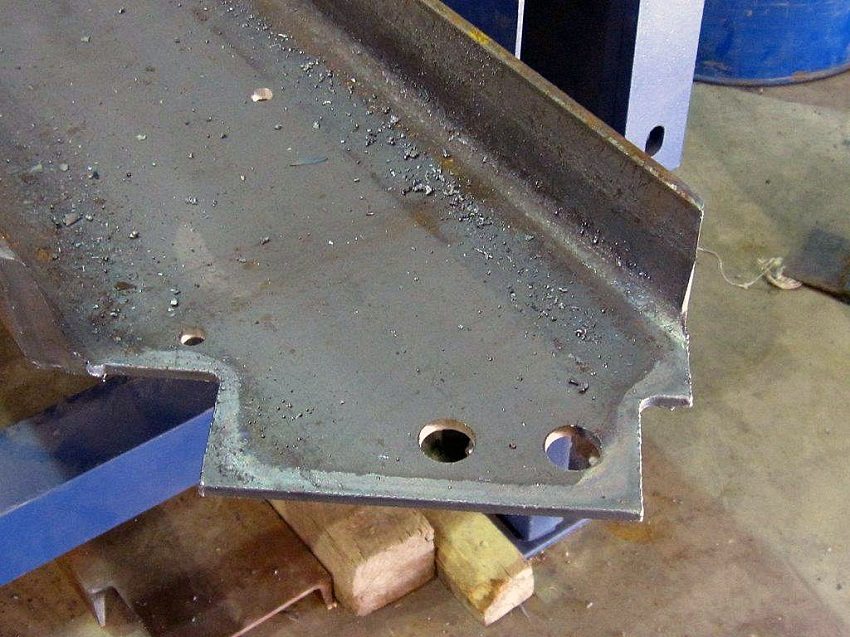The blanks for the steps are made in the shape of a triangle, into which the steps are subsequently laid. To fix these triangles, a point seam is used in several places. They check the correctness of the fastening and only after that they are securely fixed by welding to the main frame. Bolts are also used as fasteners.