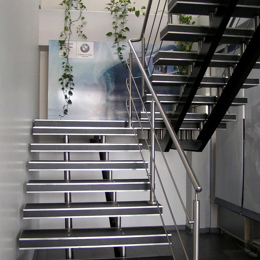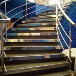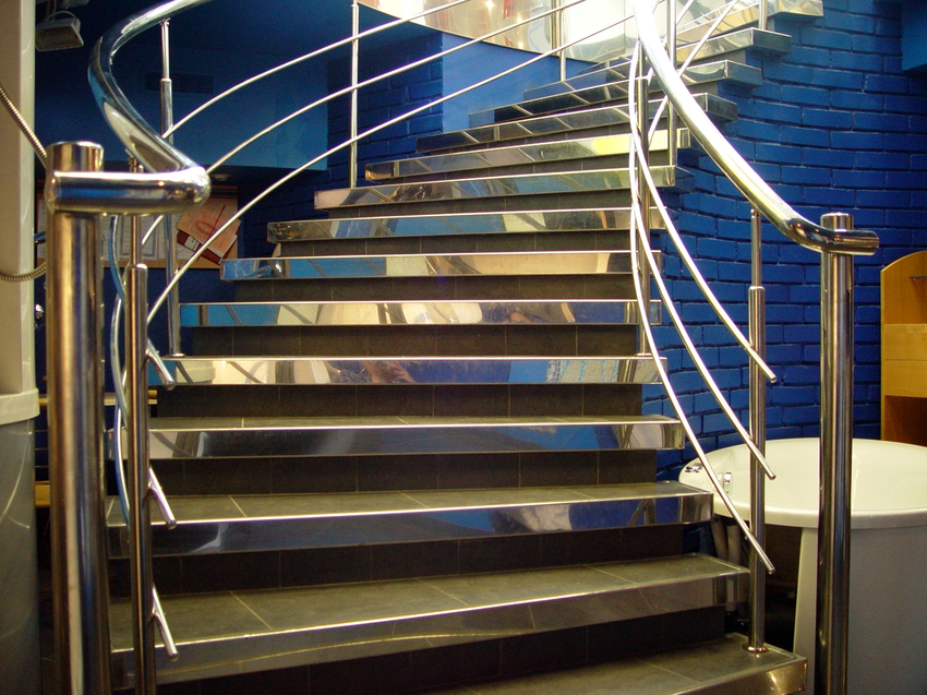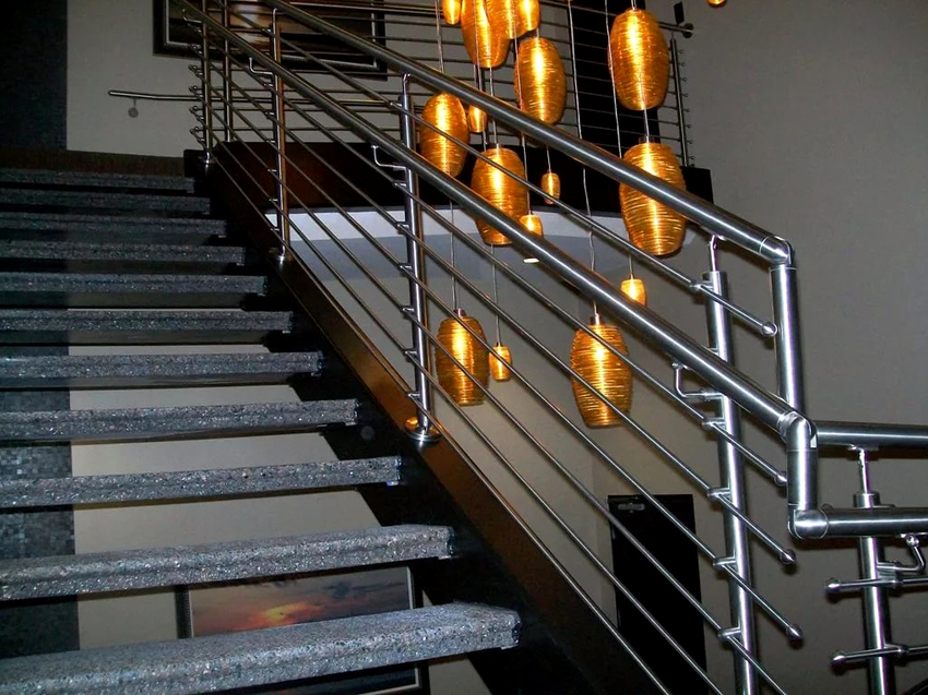 Steel, unlike stainless steel, is subject to corrosion, so a thin layer of powder coating is required on all elements.This will allow the various elements of the metal handrails for the stairs to give almost any shade, making it interesting and fun to beat the stairs in the interior. The cost of steel fences is 20-30% less than the price of the stainless option.
