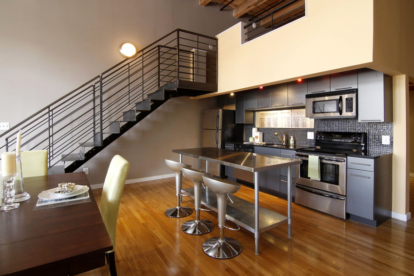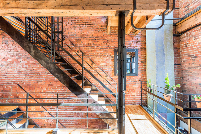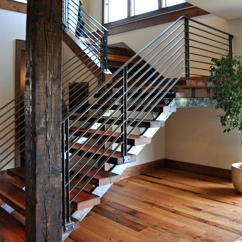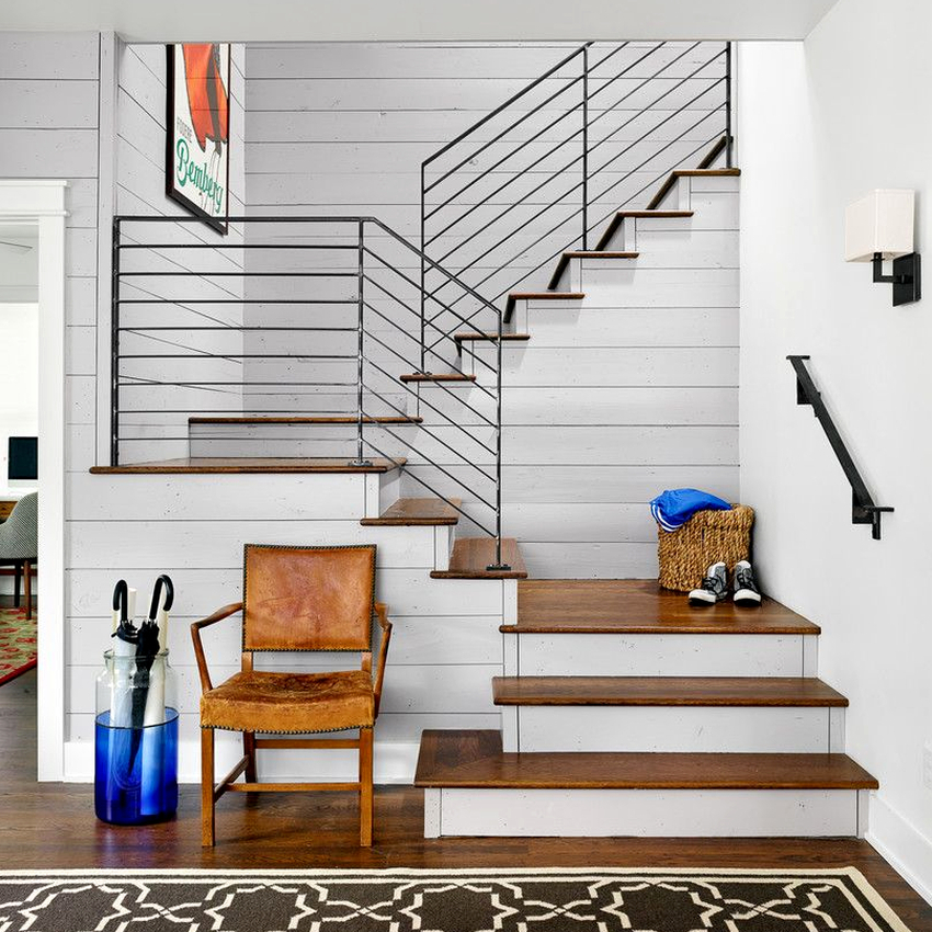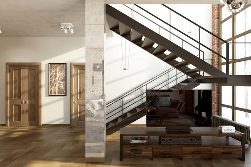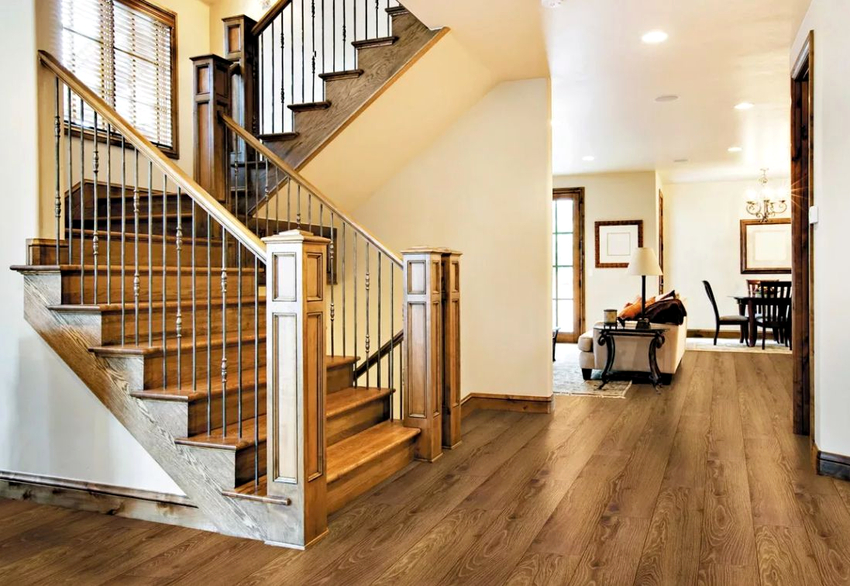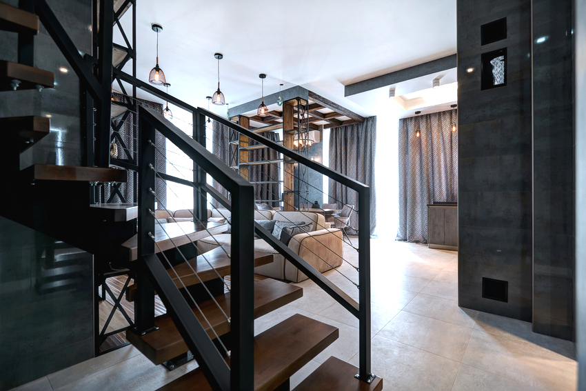 - a wooden staircase with metal railings will emphasize the rustic style, chalet interior or classics;