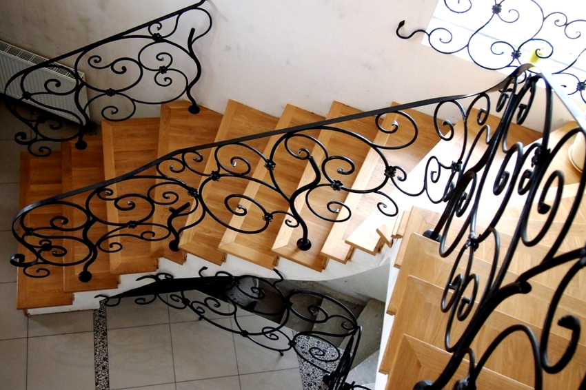 Forged products in most cases are made by hand, which requires significant physical and time costs. But the result of the work is a beautiful railings with an original appearance. Most often they are custom-made. The items are expensive, but they look luxurious, especially if various methods were used during processing, by means of which the metal is specially "aged" or given a gilded look. Often, forged railings are decorated with openwork or massive elements.