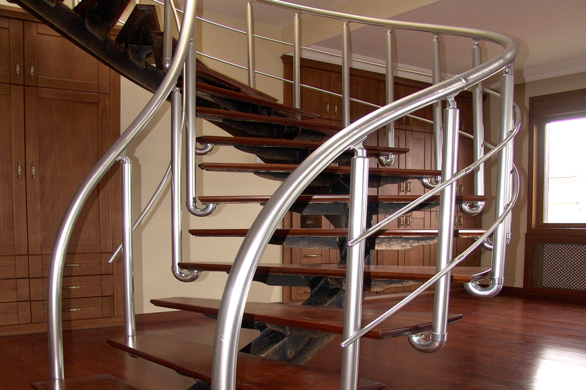 A large number of advantages have led to the fact that aluminum railing for stairs in a private house is very common. But due to the fact that aluminum is less durable than steel or stainless steel, such fences are not recommended to be installed in public or office premises.