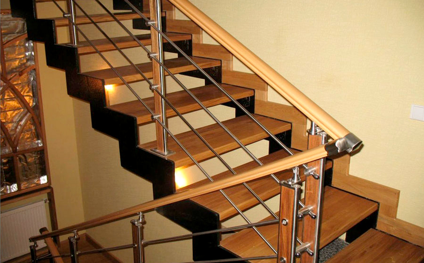 When performing combined railings, a combination of materials is used, often exactly those that are used to create the interior or exterior of the house. Thus, it turns out to install a railing that fits perfectly into the environment.