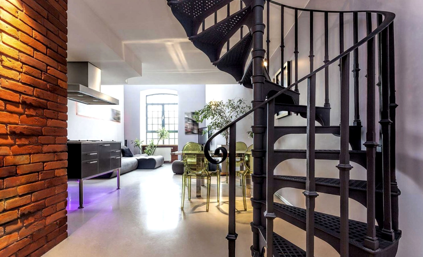 Screw. Another name is spiral staircases, which look not only beautiful, but also aesthetically pleasing. The turn is formed due to smoothly curved structures. Spiral staircases are considered safe and comfortable. They will not only decorate the room, but also become an element that allows you to competently organize the movement.