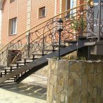 Features of the handrail for the stairs to the house, made of ferrous metals and cast iron