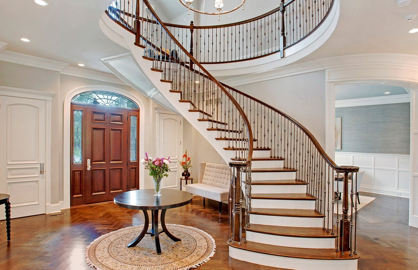 The stairs connecting the floors of the house can be simple, unremarkable, or they can be works of art. Despite the fact that the main function of the railing is to ensure safety, the choice of design should be approached correctly, and you also need to correctly determine the type and size of steps.