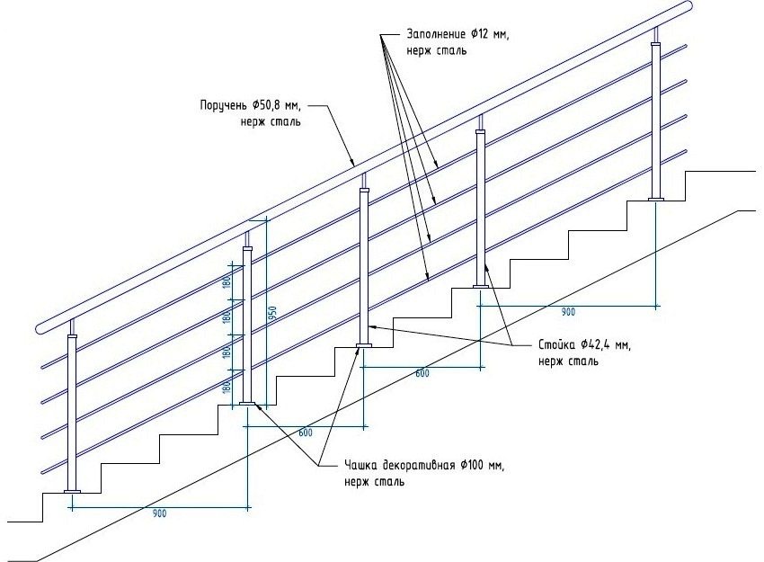 Installation of stainless steel railings consists of several stages: