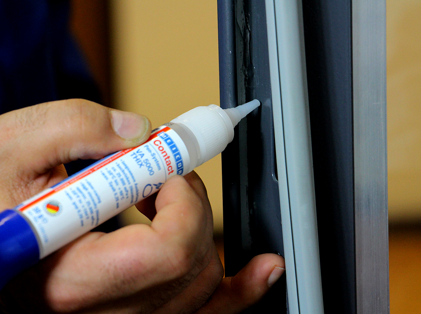 - It is necessary to apply the adhesive in a uniform and uniform layer on one of the joined sides.