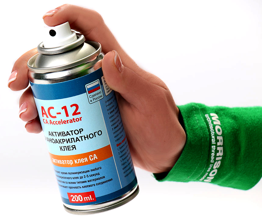 The principle of operation of the cyanoacrylate-based adhesive is that it begins to set when exposed to normal water or weak alkali. When gluing with a very thin layer of the substance, the setting process can occur without the participation of the cyanoacrylate glue activator.