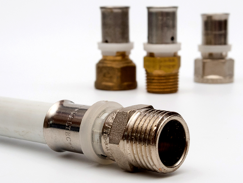 This type of connection for plastic pipes with an aluminum sheath can be used for the installation of heating networks, pipelines for cold and hot water supply, and floor heating systems, providing high reliability, tightness of connections and durability of the structure. The use of such fittings contributes to the quick installation of the system, since the fixing of the elements is carried out without the use of a special tool, which even a novice master can do. Work can be performed in restricted access conditions.
