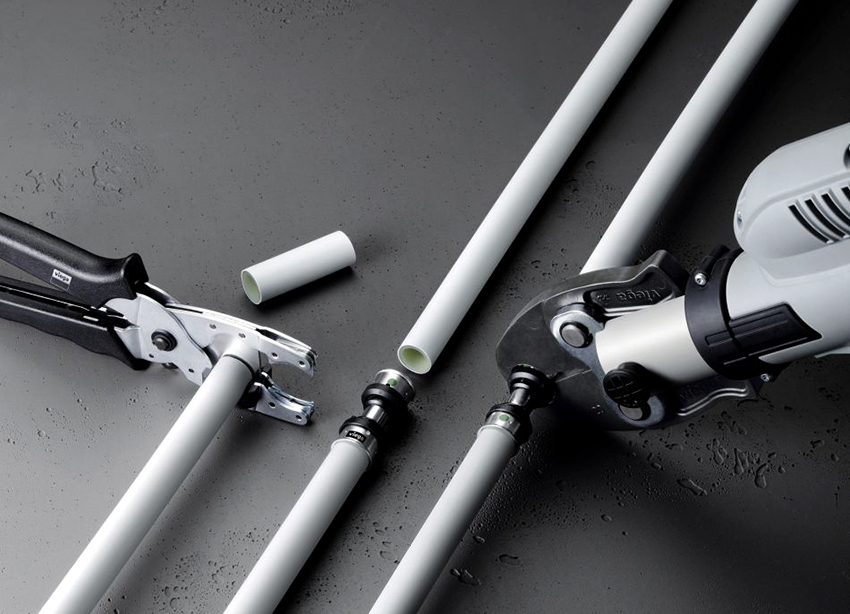 Before connecting plastic pipes using press fittings, it is necessary to prepare a special tool in the form of press tongs, which even a master with little experience can handle. At the same time, work takes a minimum of time. As a result of the use of such products, high strength and tightness of the connection of individual elements of the system is ensured, capable of withstanding a pressure of more than 10 atm. The service life of press fittings reaches 50 years.
