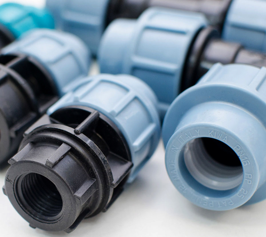 Plastic fittings for PVC, PE and MP pipes are presented in a wide variety. They are used to connect sections of the system, make various branches, turns, transitions between network elements of different diameters and materials. Installation of parts is quick and easy, while creating reliable and tight seams.