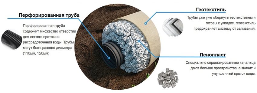 If you plan to wrap the drainage system, then geotextiles with a minimum density and thickness are suitable for this. Moreover, its water-repellent and other technical characteristics must be at the highest level.