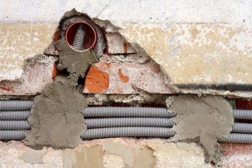 When dismantling the old wiring loop, the corrugated sleeve does not need to be removed from the groove under the plaster. Once the wires have been removed from the insulating cavity, the probe is no longer required. The corrugation hidden in the strobe can remain in it, which eliminates the need for repairs. It is enough to remove the desired piece of the electrical cable by pulling on its end. It is recommended to fill the empty corrugation with foam at the edges.