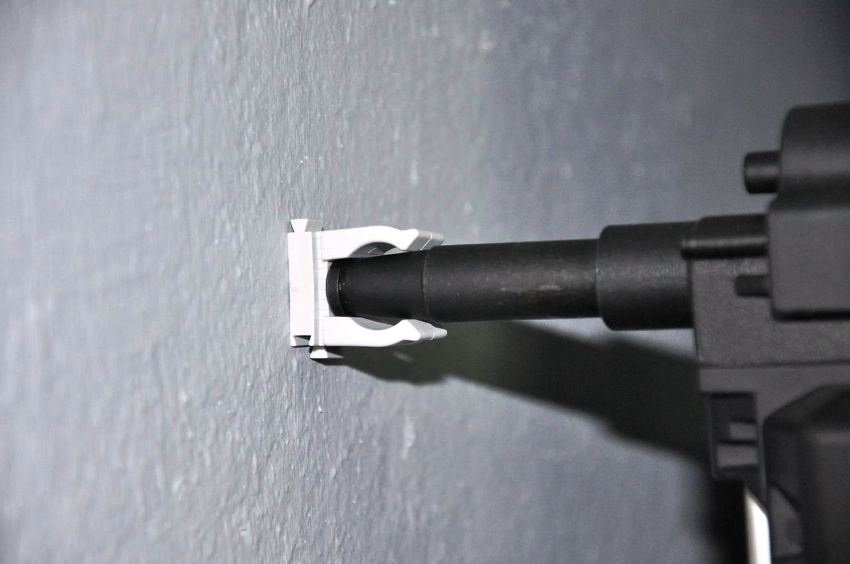 Depending on the wall material, the clamp can be secured either by screwing in a screw or in a pre-drilled hole