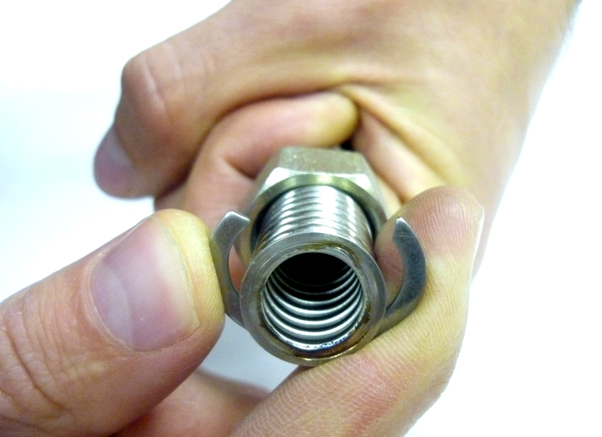 - The pipe is inserted into the fitting and the union nut is tightened.