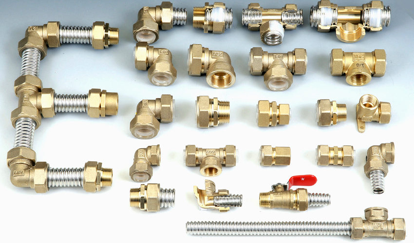 To connect individual parts of engineering communications with each other, brass fittings are most often used, which, depending on the purpose, can have a different diameter, cross-sectional shape and configuration. Such products consist of a body, a union nut, a plastic or steel ring-stopper and a silicone gasket that tightly crimps a flexible pipe.