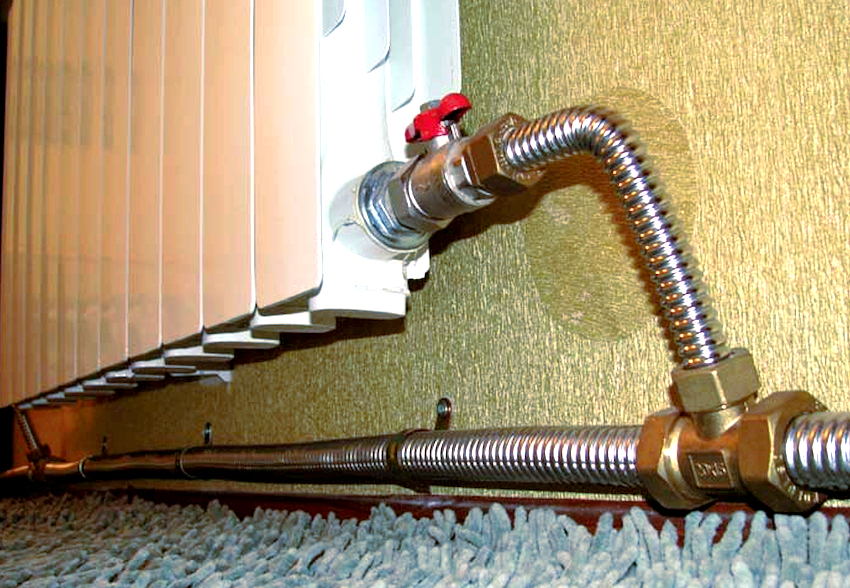 - The appearance of corrugated pipes is not very attractive, and therefore it is advisable to hide them behind the decoration on the walls, and the radiators should be covered with decorative panels.
