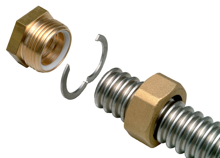 - When it becomes necessary to connect a stainless corrugated pipe with another material, it is recommended to use brass fittings.