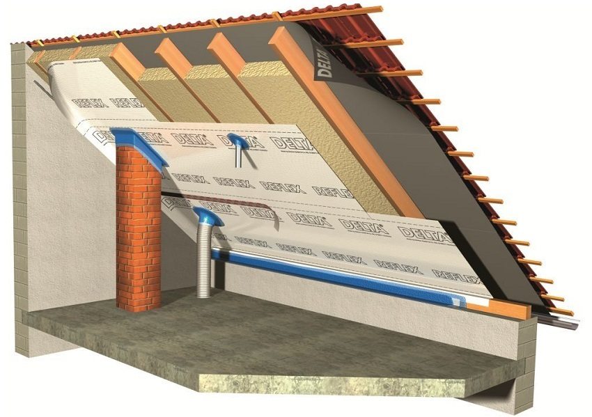 If vapor barrier the roof of the attic is subject to even before it is finally covered with roofing material, it is more convenient to make a crate of slats on the lower plane of the rafters for the installation of fine finishing. Lay the membrane on it with the smooth side up, fix it with a stapler, then put mats of insulating material between the rafters.
