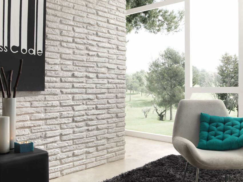 There are a lot of varieties in shape, size, color of artificial stone, so each interior can be supplemented with such a noble and luxurious finish