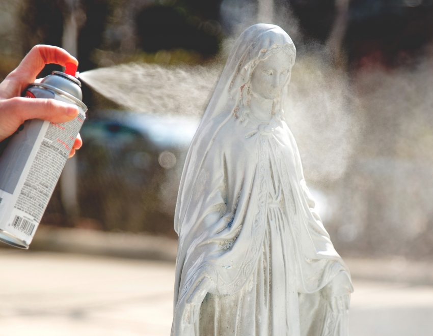 For small concrete structures such as garden sculptures, you can purchase spray paint for concrete, which will allow you to quickly and conveniently paint the surface