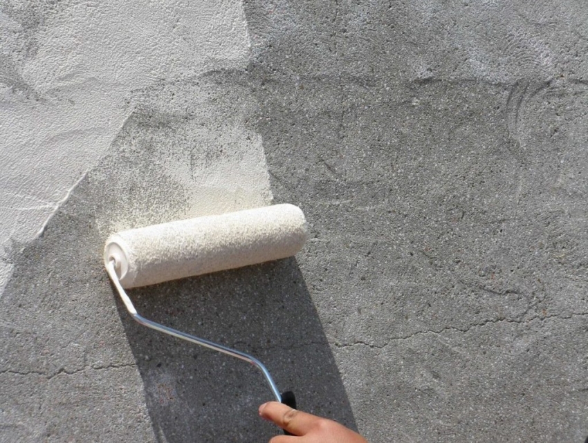 Acrylic-based compounds are applied to a previously prepared surface. To do this, the concrete must be dry cleaned or rinsed and dried. It is recommended to apply paint for exterior plastering work, although acrylics have excellent adhesion properties. A high-strength coating forms on the surface, it is not afraid of the negative effects of natural phenomena, chemicals and biological threats, for example, fungi and mold.