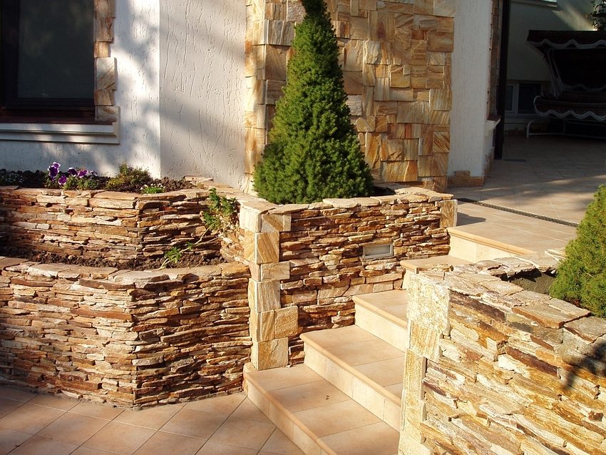 - porcelain stoneware slabs - protect all previous layers from negative natural influences, and also perform a decorative function.
