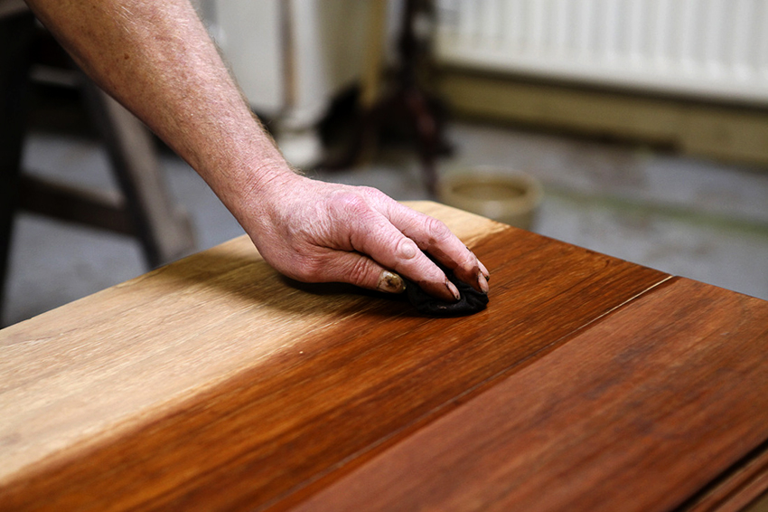 - After complete drying, the coating is processed with a coarse cloth along the grain or diagonally.
