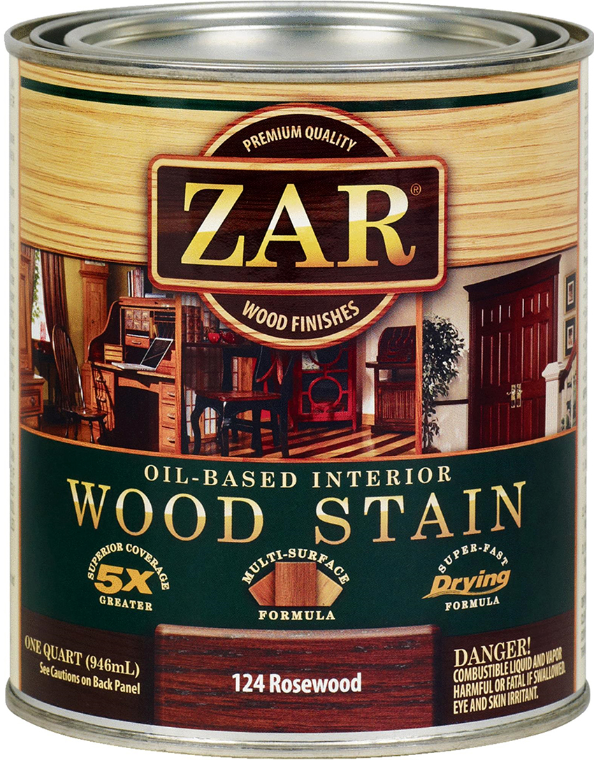 The quick-drying stain Zar is considered a universal option for indoor and outdoor use. One of the main advantages of this compound is the self-leveling structure. After processing, there are no stains or streaks on the wood.
