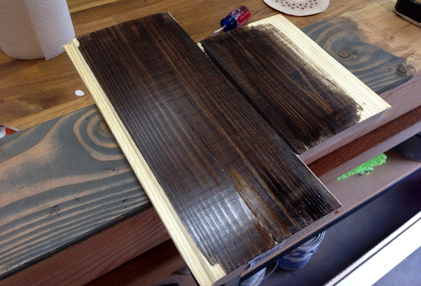 - Another coat of stain is applied.In this case, the board is covered only for 2/3 of its area.
