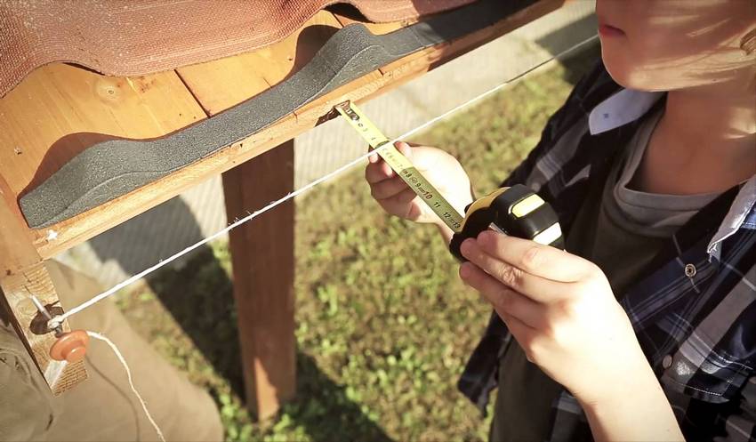 - Installation of the first sheet is done from the side opposite to the one from which the wind most often blows. The sheet is fixed flush with the overhang of the pediment and 5-6 cm of the sheet is left behind the cornice.