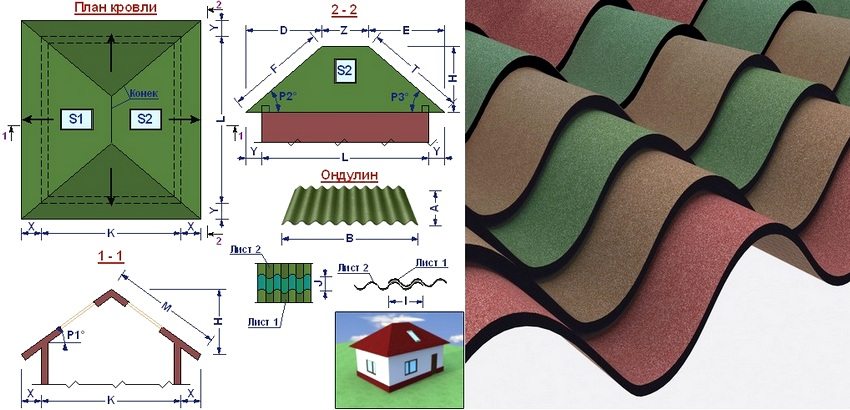 The popularity of euro slate as a roofing material in private construction is explained by a number of advantages. Among them are water resistance, environmental friendliness and noiselessness. Light weight, simple cutting and uncomplicated installation are also considered important. Having familiarized yourself with the main parameters of the ondulin material: the price per sheet, the dimensions, as well as with examples of calculating ondulin for the roof, it is quite possible to carry out the roofing with minimal costs and without waste.