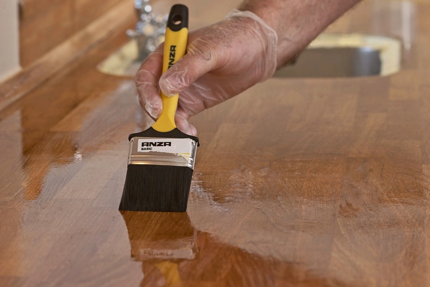 - the oil composition is used as a preliminary layer before the final application of varnish, which helps to create a denser and more durable surface;