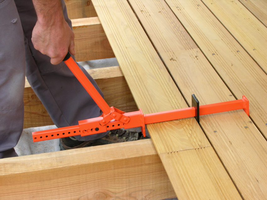 The second board usually fits easily into the groove of the first. A rubber mallet is most often used to ensure a firm and even attachment. The surface will eventually be perfect if each subsequent board is aligned with the previous one. Use a level to check. If necessary, you can put pieces of bars under the bottom.