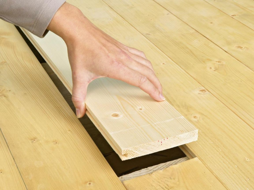 Useful advice! For a more reliable fixing of the boards to the floor, they can be fastened with self-tapping screws. The caps are then covered with a sealant and, like the rest of the surface, varnished.