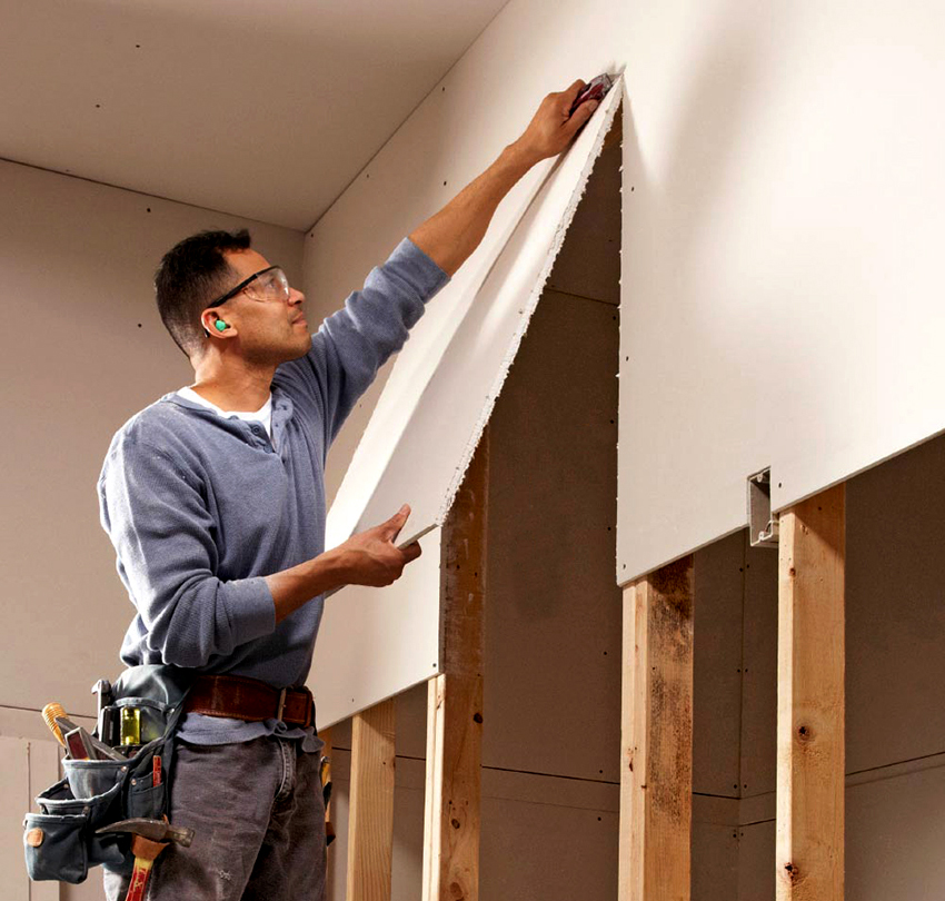 - Simple installation. The gypsum fiber board can be cut in any way without worrying about crumbling or cracking, which allows it to be used for finishing even the most difficult surface. Moreover, the number of joints does not reduce the strength of the structure.