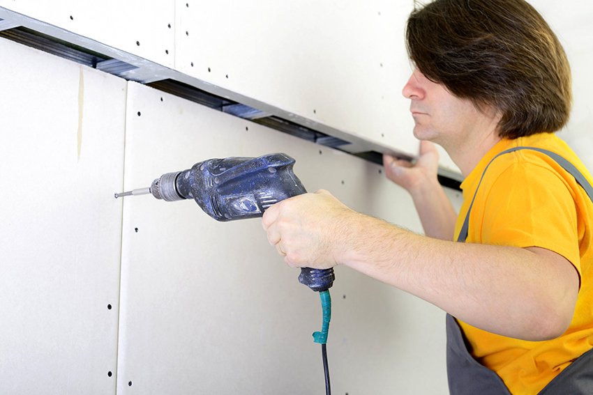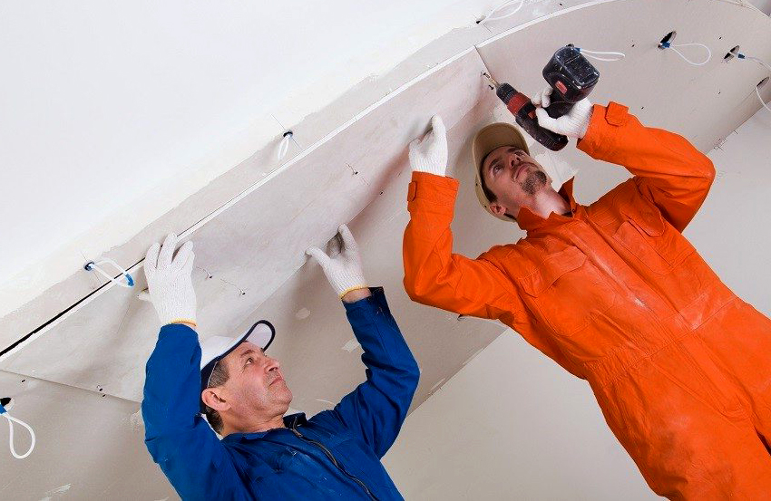Helpful information! The course of actions for laying gypsum plasterboard does not differ from the process of installing ordinary drywall. In this case, the material is also fixed with self-tapping screws, after which all joints are reinforced, and then the previously primed surface is putty.