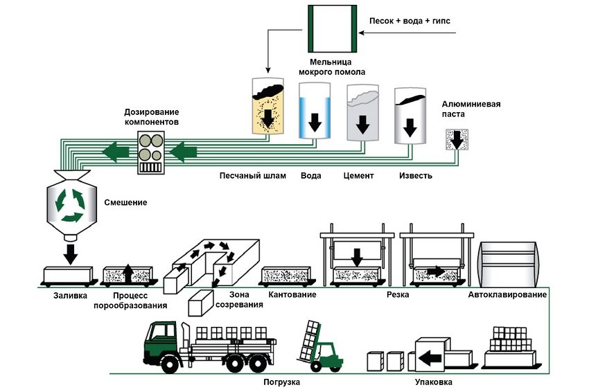 For the manufacture of gas blocks, you need: water, quartz sand, cement, lime, aluminum paste. Many are skeptical about the use of the latter component in the production process, as this element is hazardous to health. But it is important to know that in the process of processing its particles dissolve, so the finished blocks do not pose any threat.