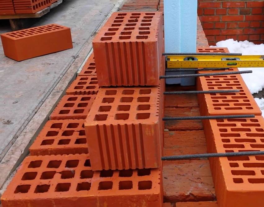 So, when laying the supporting structure, you can use not 3 rows of standard bricks and a row facing, and 2 rows of hollow and one row of facing bricks and a half. Moreover, not only the amount of material used is significantly saved, but also the consumption of the solution.