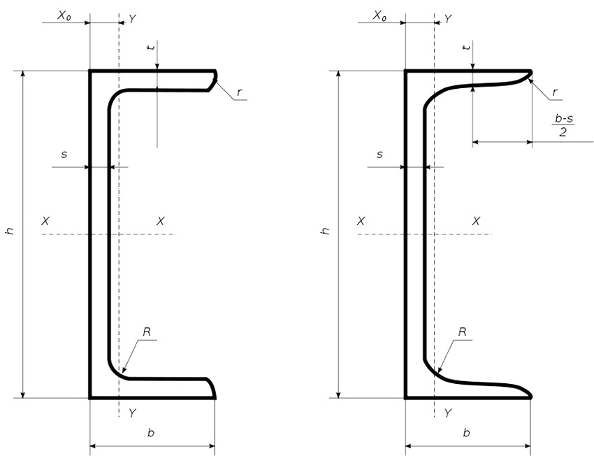Channel 14, like others types of rolled metal, can be both with parallel shelves (marking "P"), and with inclined ones - brand "U". There are common characteristics for both series: