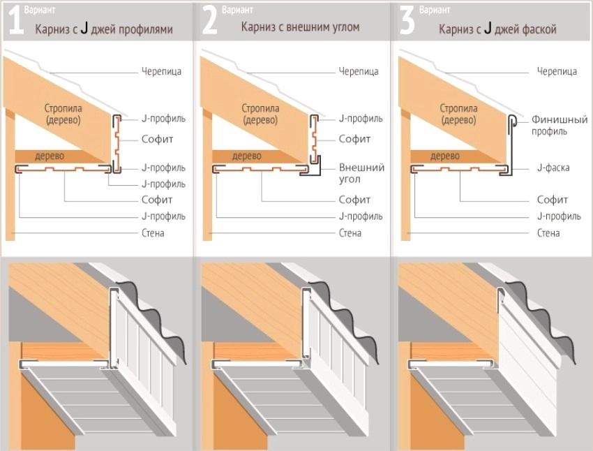 Classic filing... In this case, the usual horizontal wooden box is installed. An additional board must be installed between the rafters. The edges of the plate will be attached to it. The soffits are laid along the wooden frame. One edge of the plate is fixed on the lower section of the rafters, and the second on the additional laid board. In those corners where the roof slopes come into contact, it is necessary to fix the ends of the boards.The joints obtained in this way are located from the angle of conjugation of the walls to the angle obtained by the slopes.