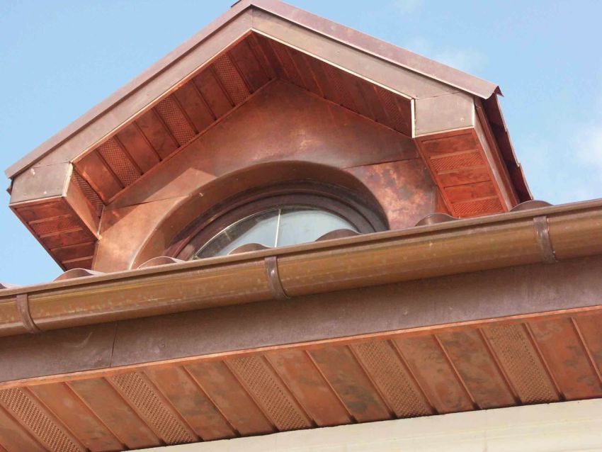 - perforated copper soffits are the most expensive. They are distinguished by a small plate thickness and a long service life of up to 150 years. At the same time, soffits are environmentally friendly, resistant to the effects of aggressive environmental factors, do not require constant careful maintenance;